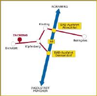 A 9 München - Nürnberg Ausfahrt Denkendorf >Kipfenberg >>Eichstätt, ca. 2 km hinter Walting Abzweig rechts >Inching